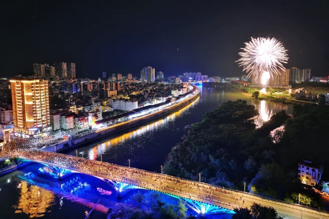 花船歌舞表演、无人机+烟花表演、